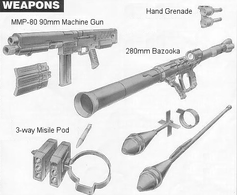 MMP-80 90mm 머신건 일년전쟁 후기에 사용된 MS용 머신건의 초기형. 90mm 실체탄을 쓴다.