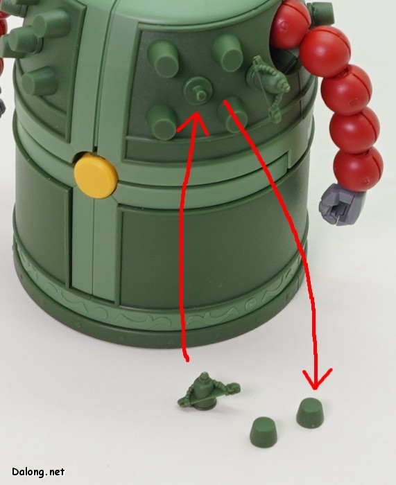 하체의 돌기부를 분리하여 미니 만다라 건담을 장착할 수 있습니다.