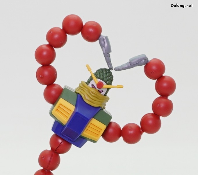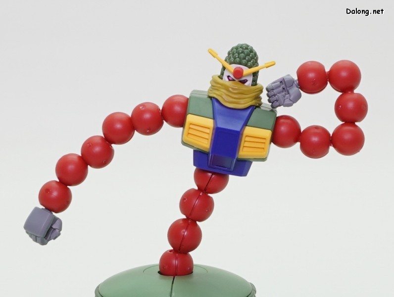 우선 이 괴이한 디자인을 그럴 듯하게 프라화했는데, 특히 염주같은 팔과 허리를 마디마디 가동되는 구조로 설계해놨네요. 덕분에 어떤 각도로도 유연하게 가동이 가능하고, 관절강도도 좋아서 고정성도 훌륭합니다. 다만 모든 마디가 가동되다보니 매끈하게 각을 잡기가 약간 까다로운데, 조금만 신경쓰면 자연스럽게 자세를 만들 수 있네요. 건담 최초로 하트 모양을 제대로 만들 수 있다는 점은 덤.^^