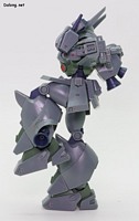 이 킷은 클럽 G (프리미엄 반다이) 온라인 한정판으로 발매된 RE/100 데난게 입니다. 건담 F91에 등장하는 기체로서, 3년만에 출시된 신규조형 RE/100 킷이기도 한데요. 구판으로 나온 적 있는 1/100 데난 존을 베이스로 한 양산형 기체 컨셉입니다. 선배 기체인 데난 존을 패스하고 34년만에 데난 게가 처음으로 프라화된 셈인데요. 관절이 부드러우면서도 고정성이 좋아서, 폴리캡리스 구조 치고는 가동감이 아주 좋습니다. 가동성 역시 평균 이상의 수준으로서, 무릎앉아를 비롯한 여러가지 포즈를 자연스럽게 연출할 수 있네요. 다만 회색 사출색 자체가 애초부터 세련된 느낌을 주기 어렵고, 미묘하게 몰드가 둔탁한 느낌이 들기도 합니다. 아무래도 올드한 디자인이라 그런 듯 한데, 약간 칙칙해보이는 외모에 비해 킷 자체의 품질은 매우 좋네요. 기본 무장으로는 빔 라이플, 빔 사벨, 빔 실드가 제공되며, 특이하게 퍼레이드용 발바닥 파츠도 제공되는데요. 그 외에 가슴 파츠는 2가지색으로 선택할 수 있습니다. 이렇듯 올드한 외형과 최상의 관절특성을 보여주는 미묘한 신제품인데요. F91 팬이거나 스타일이 마음에 든다면 강추할만한, 의외의 고품질 프라인 듯 합니다 :-)