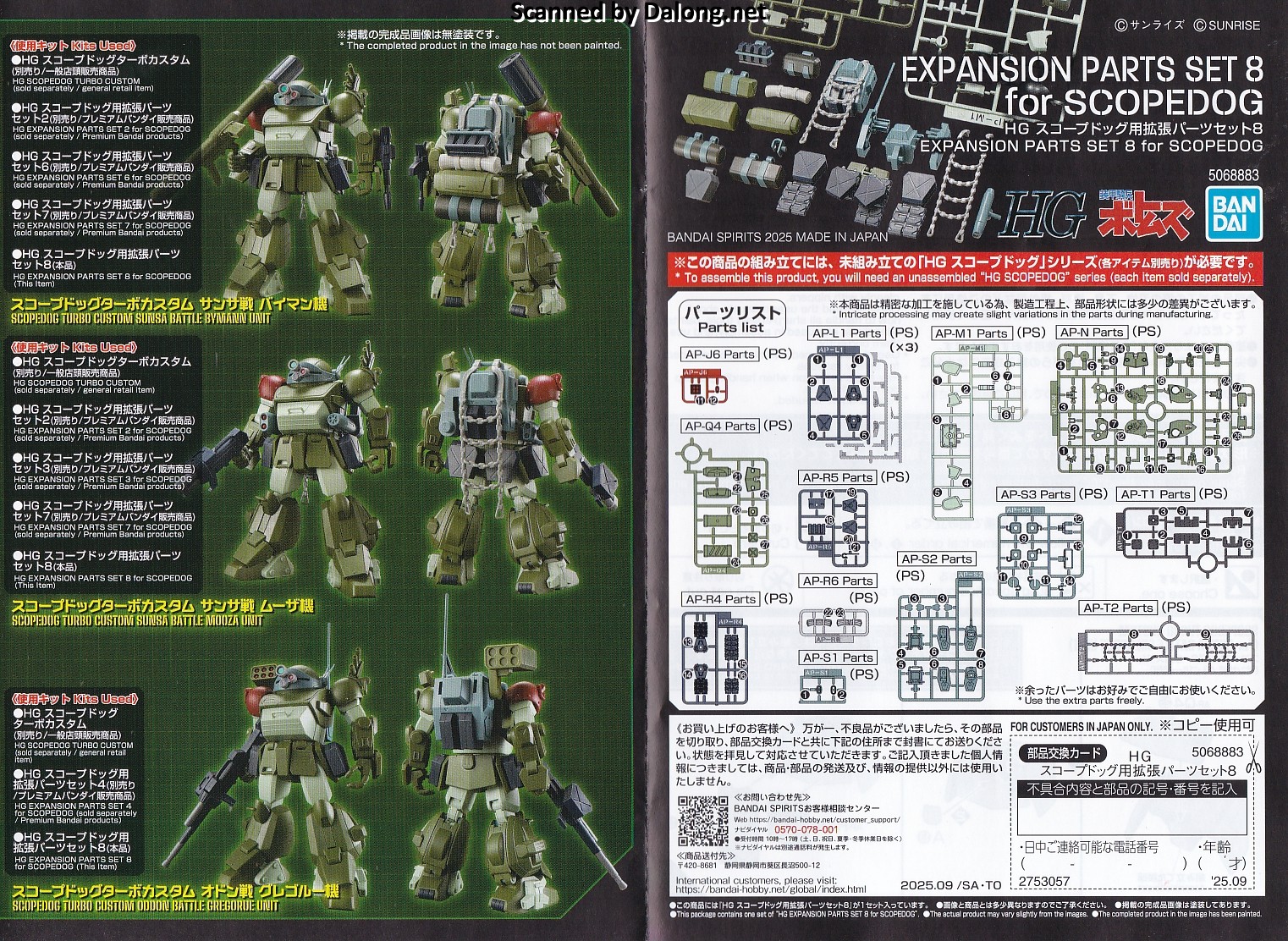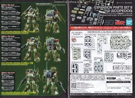 이 킷은 프리미엄 반다이 온라인 한정판으로 발매된 스코프독 확장 파츠 세트 8 입니다. 일반판으로 나온 HG 스코프독 터보커스텀에 적용 가능한 여러 미션팩과 악세사리들이 들어있는 구성인데요. 내용 구성물은 아래와 같습니다.