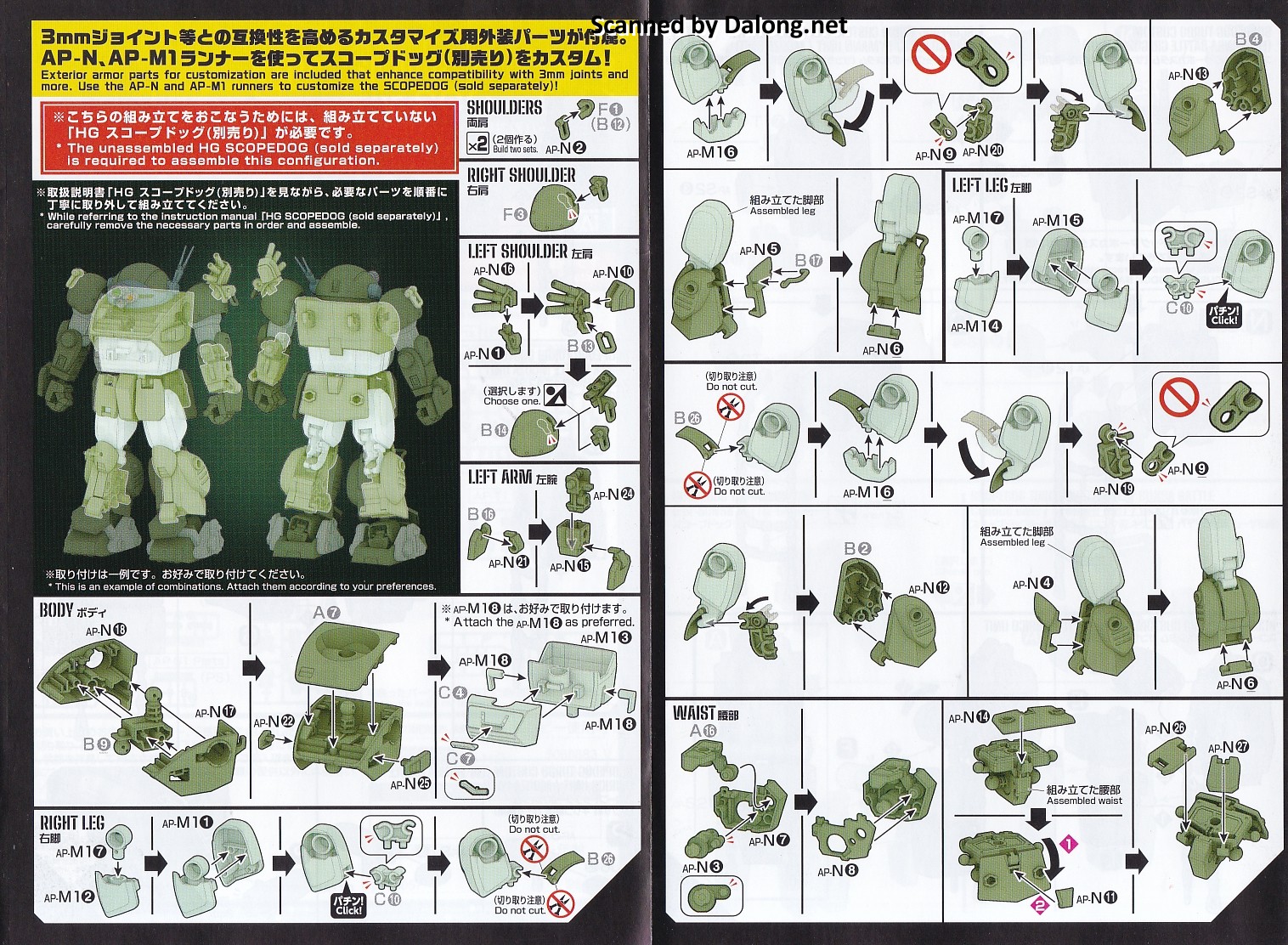 또한 공용의 AP-N 런너와 AP-M1 런너가 재활용되어, 몸통 일부 파츠를 콜라보에 사용할 수 있는데요. 대부분의 파츠는 사실상 정크라서, 자원의 낭비같은 생각이 들긴 합니다. 이것들을 빼고 가격을 낮추는게 낫지 않았을까 싶네요.