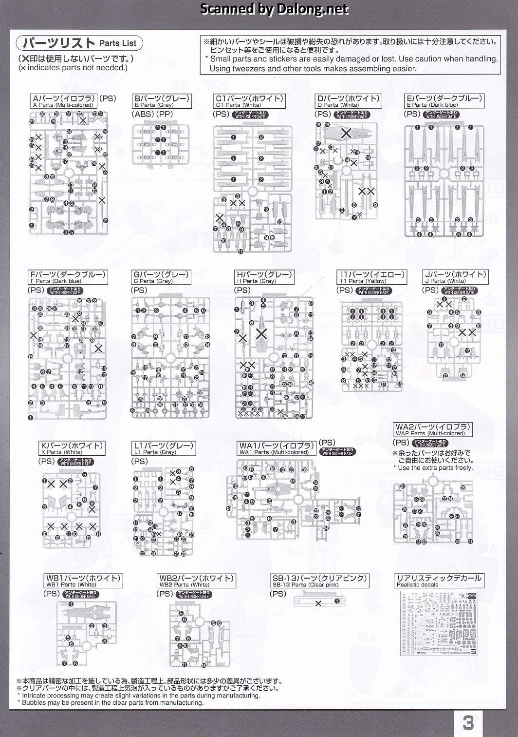 나머지 팔,다리,기본 무장의 부품도는 원본킷과 같습니다.