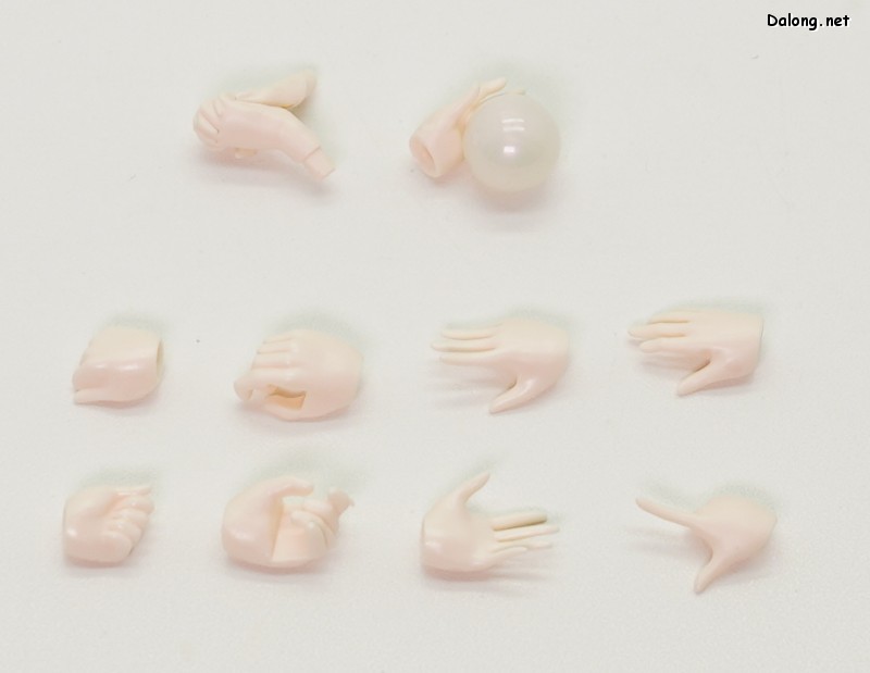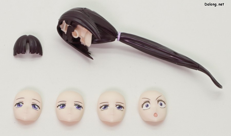 얼굴은 전작들처럼 2개의 탄포 인쇄 얼굴과 습식데칼용 얼굴이 제공되며, 여전히 정확한 위치에 눈 데칼을 붙이기 쉽지 않네요. 그 외에 뒷머리는 2가지 스타일 중에서 선택 가능하며, 악세사리로 의자, D.O.M.E, G 컨트롤러가 제공되고 있습니다.
