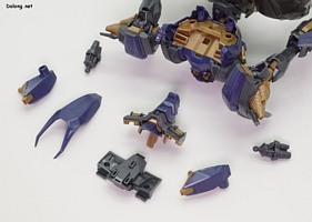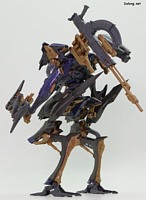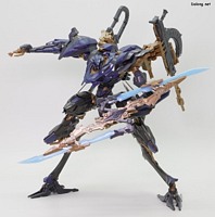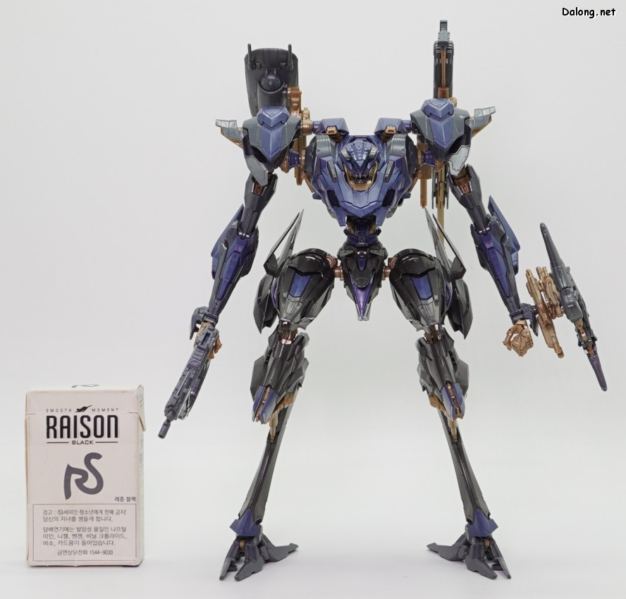 이 킷은 고토부키야 아머드 코어 VI 시리즈로 발매된 스틸 헤이즈입니다. 2015년 이후, 10년만에 발매된 완전 신금형 아머드 코어 킷인데요. MG 사자비와 PG 사이 수준의 거대한 덩치를 보여주는 킷으로 나왔습니다. 우선 박스아트부터 고급 인쇄가 적용되어, 15500엔이라는 고가 킷임을 자랑하고 있는데요. 크기가 크기인 만큼, 런너와 부품수도 상당히 많습니다. 만들면서 제일 먼저 놀란 부분은 조립감인데요. 다소 뻑뻑한 고토부키야 특유의 조립감과 달리, A급 스냅타이트가 적용된 반다이 킷 느낌으로 나왔습니다. 부드럽게 끼워지면서도 딱딱 들어맞고, 파츠 고정성도 좋아서 튼튼하게 결합할 수 있네요. 작은 부품이 난무하는 고토부키야 아머드 코어 시리즈는 본드 없이는 조립이 어렵다는 이미지가 있었는데, 10년만에 나온 이 킷은 완전히 극복한 모습입니다. 또한 PG급의 크고 무거운 덩치임에도 불구하고, 전체적인 관절강도가 아주 좋네요. 부드러우면서도 튼튼한 고정성을 보여주고 있어서, 포징의 스트레스가 거의 없습니다. 다만 고관절을 양쪽으로 크게 벌리는 경우는 상체의 무게를 버티지 못하고 다리가 벌어지는 경우가 있네요. 딱 이 부분만 제외하면 전체적인 내구성은 크기대비 충분히 훌륭합니다. 외형면에서는 고토부키야 특유의 조각조각 부품분할로 훌륭한 색조합과 비주얼을 보여주고 있는데요. 무장으로 버스트 라이플, 버스트 핸드건, 레이저 슬라이서가 제공되고 있으며, 세밀한 디테일과 큼직한 볼륨감을 보여주고 있습니다.이중 레이저 슬라이서는 접은 형태와 편 형태 2가지가 모두 제공되고 있어서, 조인트 블럭과 전용 손등 파츠를 결합하여 손에 장착할 수 있네요. 그 외에 백팩에 장착하는 플라즈마 미사일은 교체식으로 앞/뒤 오픈 상태를 구현할 수 있습니다. 여기에 백팩 양쪽에는 웨폰 행거를 장착할 수 있으며, 조인트 파츠를 교체하여 버스트 라이플과 버스트 핸드건을 모두 거치할 수 있는데요. 상체를 분리하고 등 부분 파츠를 교체하면 전개상태로도 구현할 수 있습니다. 이렇듯 풍성한 옵션들이 제공되어, 여러가지 개성적인 포즈를 취할 수 있는데요. 고토부키야 플라잉 네오를 이용하면 공중 포즈도 취할 수 있지만, 반다이 스탠드와는 호환되지 않아서 가공이 필요한 점이 아쉽습니다. 참고로 반다이 30mm 시리즈로 나온 스틸 헤이즈와 비교를 원하는 분들도 있을텐데요. 아쉽지만 돈과 시간의 부족으로 30mm 시리즈는 손대지 않고 있습니다. (지금도 충분히 많이 리뷰하고 있다고 생각합니다만) 대신에 전시물을 본 적이 있어서 대충 비교하자면.. 일단 크기 면에서 2배정도 크고, 디테일이나 색분할, 프로포션 모두 이 킷이 훨씬 상급 레벨인 듯 하네요. 다만 그만큼 가격도 4배라는 점이 함정입니다만. 이렇듯 고토부키야가 작정하고 만든 A급 퀄리티 킷으로서, 왠만한 반다이 건프라보다 조립감, 내구성이 더 우수한데요. 가격이 비싸긴 하지만 나름 돈값을 하는 명품 메카닉 프라모델이라고 할 수 있을 듯 합니다. 아머드 코어 팬이라면 10년만의 고품질 신상에 열광할 듯 하며, 그냥 스타일이 마음에 드는 분들께도 일단 품질로는 강추드릴 수 있는 좋은 킷인 듯 하네요 :-) TOP