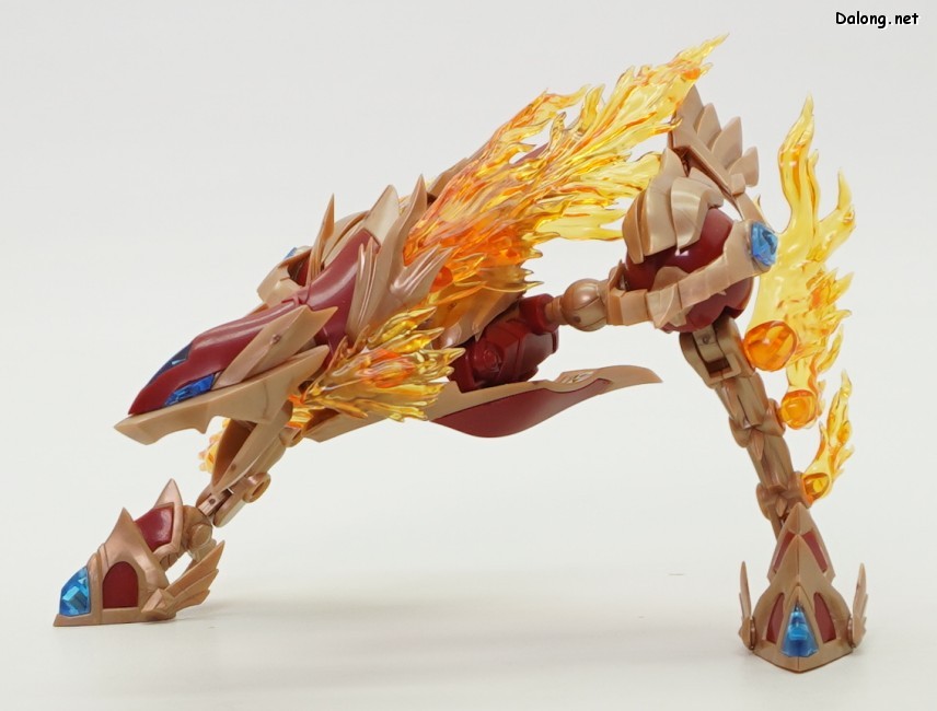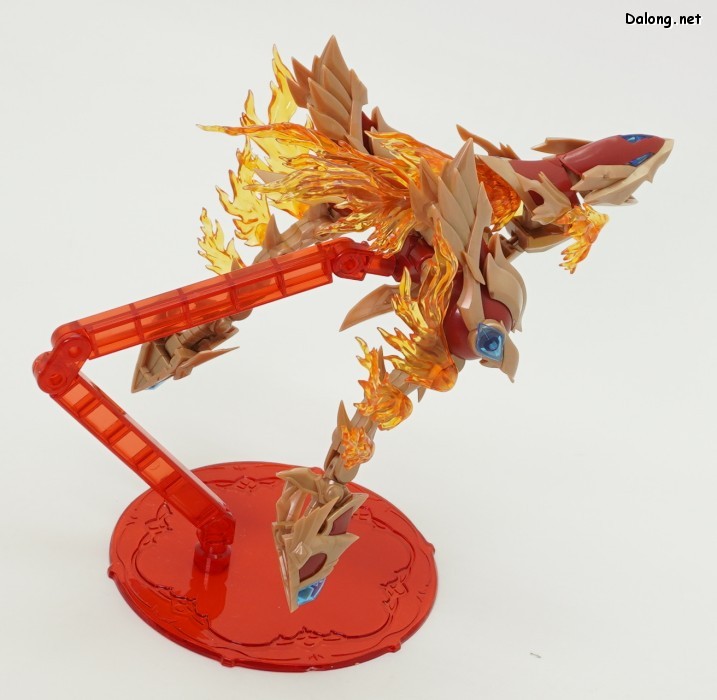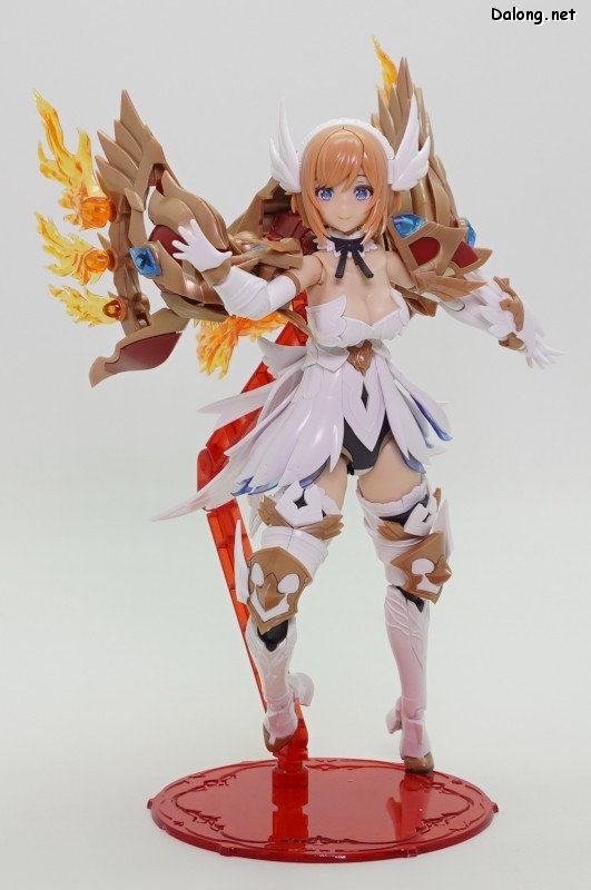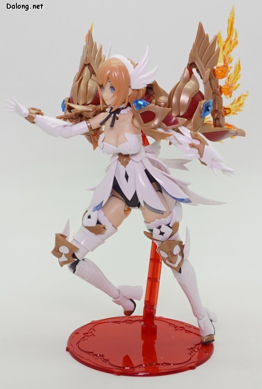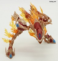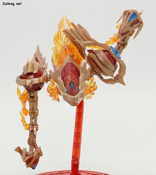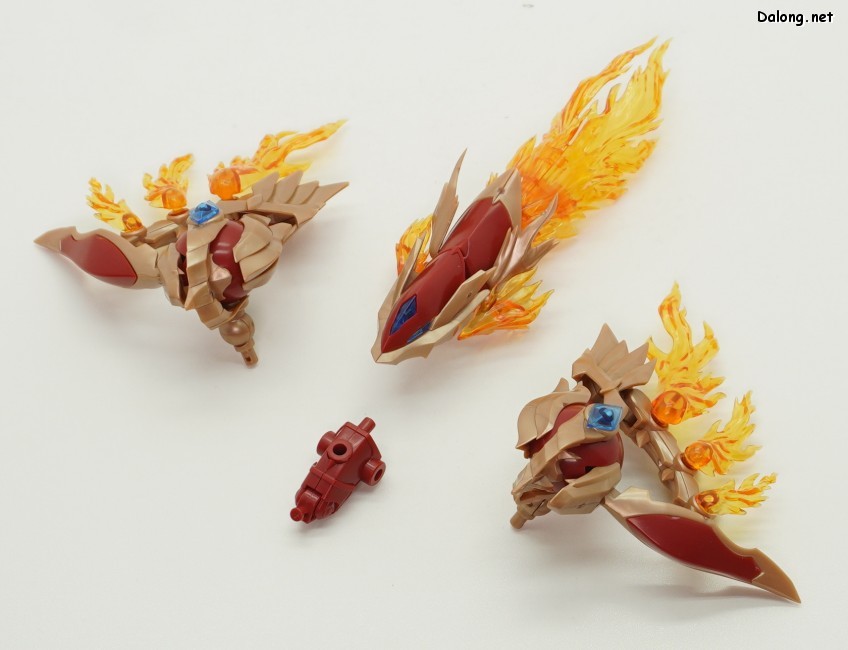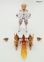 이 킷은 고토부키야 아르카나디아 시리즈로 발매된 제노 알마 플레임 스트랄입니다. 이전에 발매된 하이드로 제포스 & 트리클 데카포디아와 같은 컨셉의 킷인데요. 독립적인 캐릭터로도 구성되지만, 분해하면 아르카나디아 루미티아의 병장으로 결합할 수 있습니다. 형태는 두 다리만 달린 타조 같은 느낌의 캐릭터로서, "플레임(화염)"이라는 이름처럼 붉은 색과 불꽃을 형상화한 디자인인데요. 몸통과 다리뿐인 구조상, 다양한 포징은 어려운 구조입니다. 대신에 전체적으로 헐거운 곳 없이 무난한 관절강도를 보이고 있어서, 고정성 걱정은 없긴 하네요. 참고로 독자적인 상태를 몬스터 모드, 병장으로 결합되는 상태를 웨폰 모드로 분류하고 있습니다. 제노 알마 시리즈답게, 분해 후 재조합을 통해 루미티아의 백팩과 어깨 장식으로 결합할 수 있는데요. 루미티아와는 큰 문제없이 잘 결합되고 있으며, 백팩으로 결합된 다리 부분을 분리하여 무기로 사용하는 기믹도 제공되고 있습니다. 또한 함께 발매된 제노 알마 블레이즈 오피스와도 합체가 가능하네요. (결합 부분은 블레이즈 오피스 리뷰 참고) 이렇듯 무난한 퀄리티로 나온 걸프라 악세사리 킷으로서, 루미티아를 갖고 계신 분이라면 가볍게 즐겨보기 좋은 킷인 듯 합니다 :-)