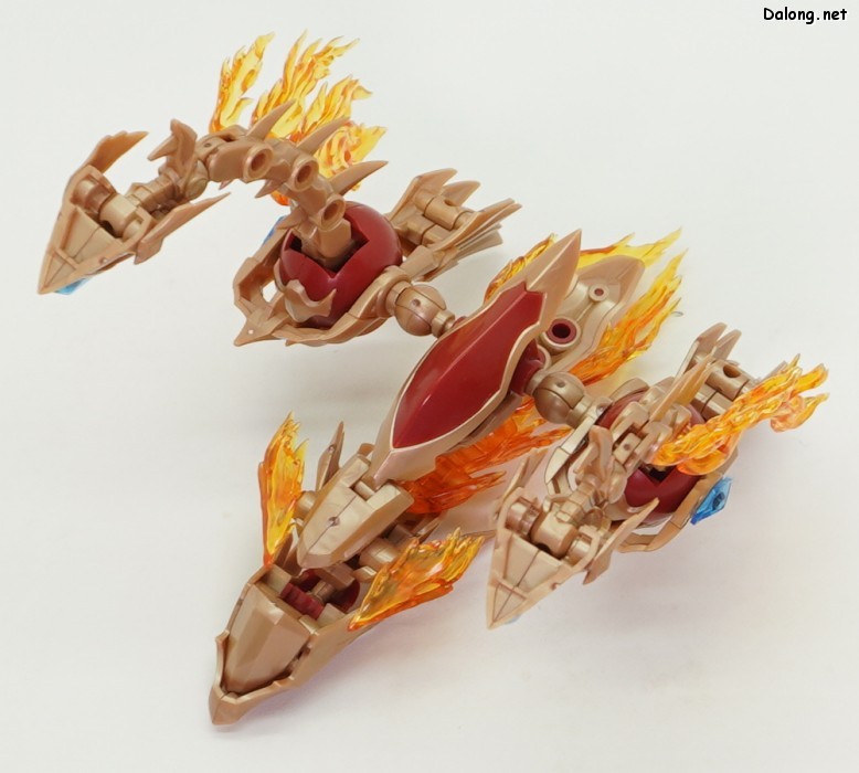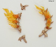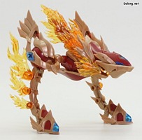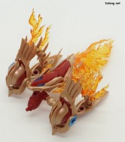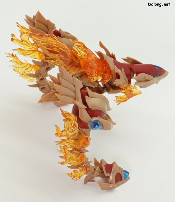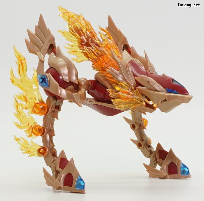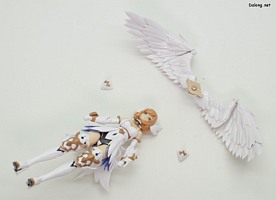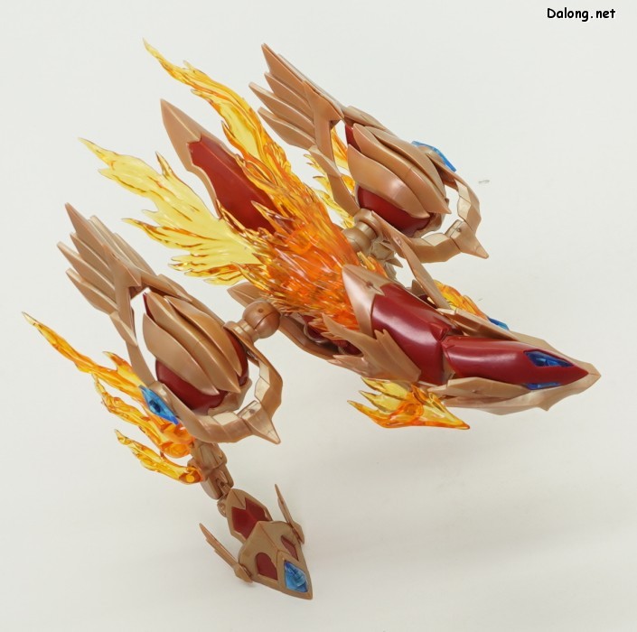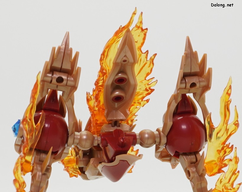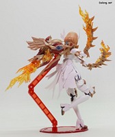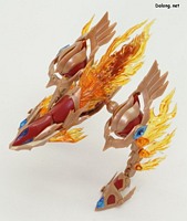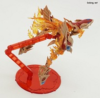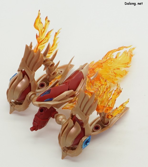 이 킷은 고토부키야 아르카나디아 시리즈로 발매된 제노 알마 플레임 스트랄입니다. 이전에 발매된 하이드로 제포스 & 트리클 데카포디아와 같은 컨셉의 킷인데요. 독립적인 캐릭터로도 구성되지만, 분해하면 아르카나디아 루미티아의 병장으로 결합할 수 있습니다. 형태는 두 다리만 달린 타조 같은 느낌의 캐릭터로서, "플레임(화염)"이라는 이름처럼 붉은 색과 불꽃을 형상화한 디자인인데요. 몸통과 다리뿐인 구조상, 다양한 포징은 어려운 구조입니다. 대신에 전체적으로 헐거운 곳 없이 무난한 관절강도를 보이고 있어서, 고정성 걱정은 없긴 하네요. 참고로 독자적인 상태를 몬스터 모드, 병장으로 결합되는 상태를 웨폰 모드로 분류하고 있습니다. 제노 알마 시리즈답게, 분해 후 재조합을 통해 루미티아의 백팩과 어깨 장식으로 결합할 수 있는데요. 루미티아와는 큰 문제없이 잘 결합되고 있으며, 백팩으로 결합된 다리 부분을 분리하여 무기로 사용하는 기믹도 제공되고 있습니다. 또한 함께 발매된 제노 알마 블레이즈 오피스와도 합체가 가능하네요. (결합 부분은 블레이즈 오피스 리뷰 참고) 이렇듯 무난한 퀄리티로 나온 걸프라 악세사리 킷으로서, 루미티아를 갖고 계신 분이라면 가볍게 즐겨보기 좋은 킷인 듯 합니다 :-)