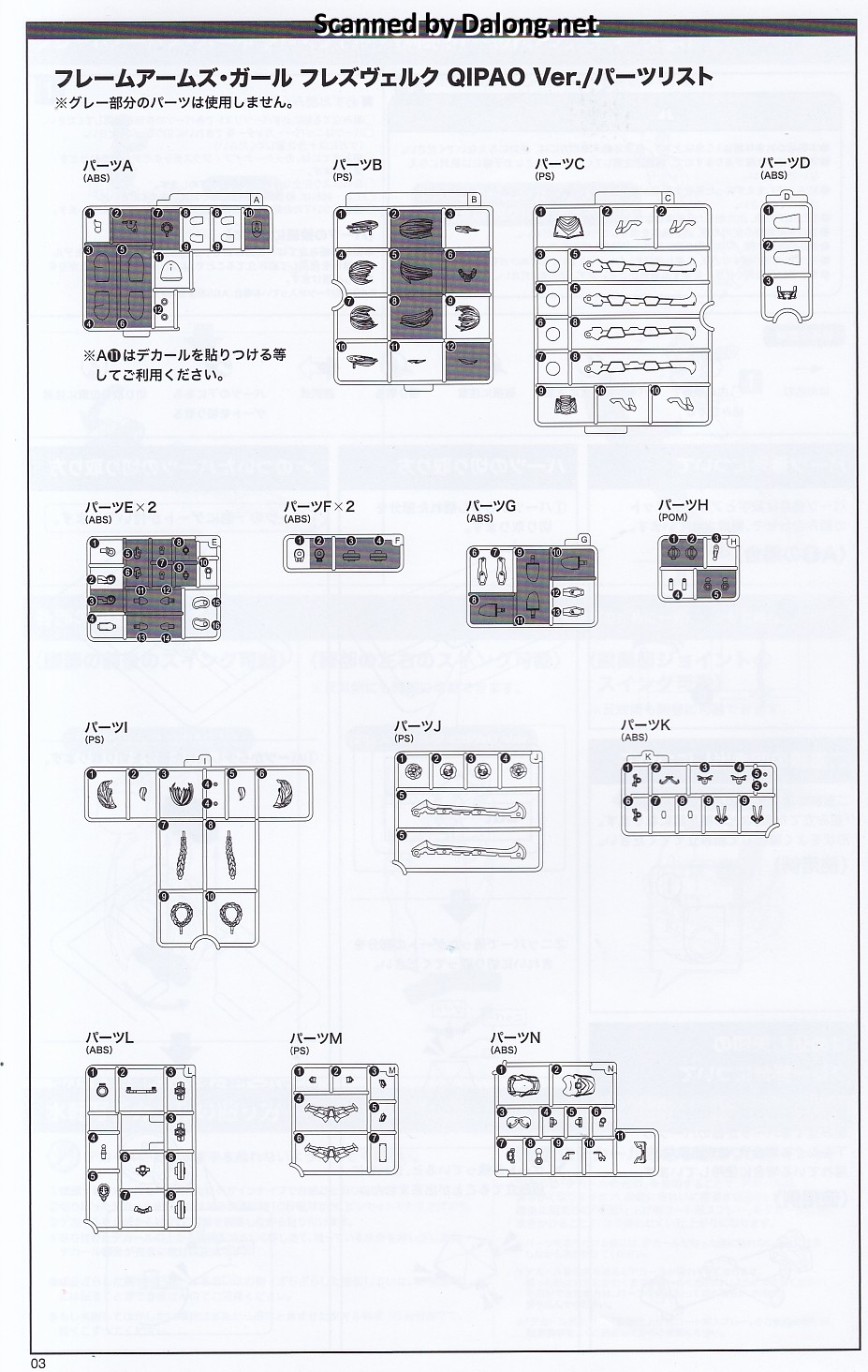 부품도는 원본킷과 동일합니다. 프레임암즈 걸 흐레즈베르크 루프스 치파오 Ver. 부품도 보기