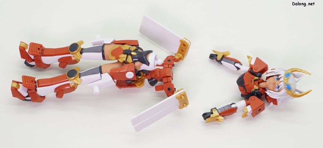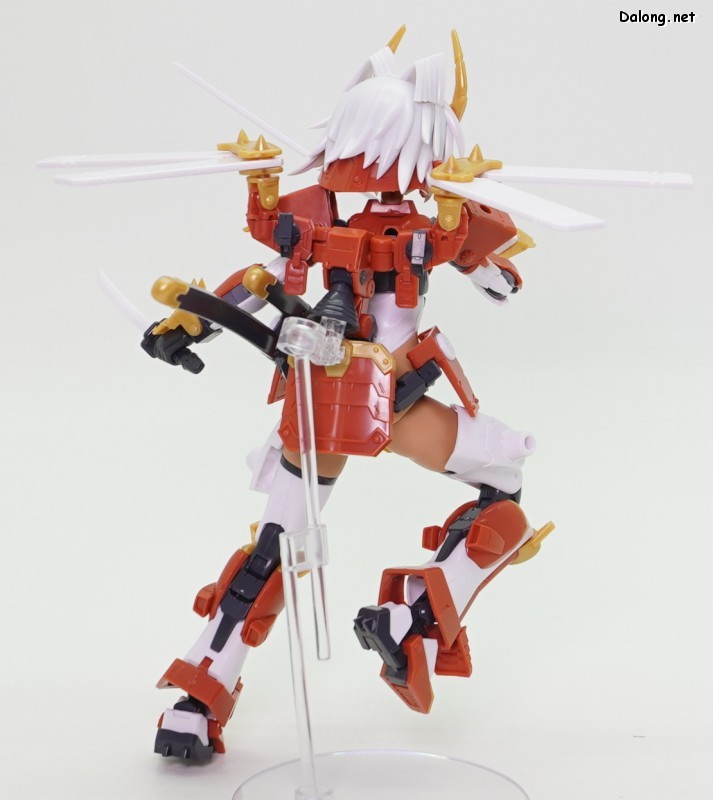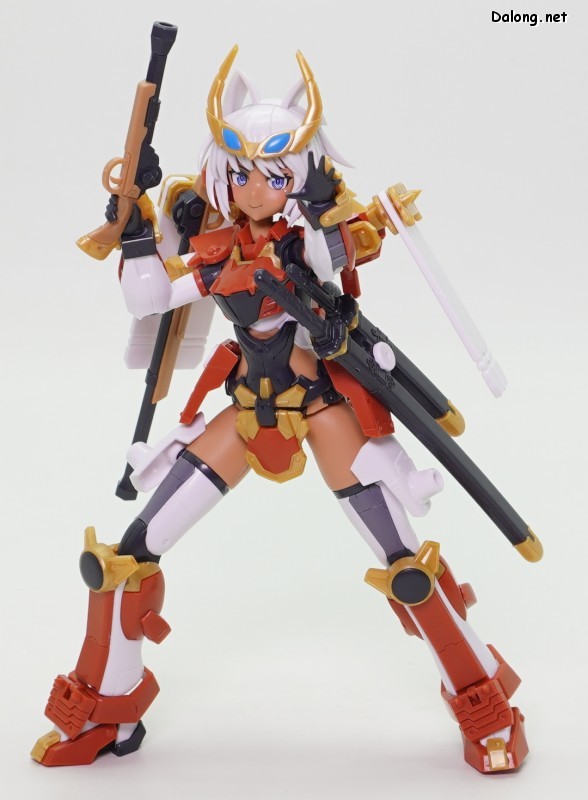 이 킷은 프레임암즈 걸 시리즈로 발매된 신겐입니다. 이름처럼 프레임암즈 신겐의 컨셉을 걸프라화시킨 캐릭터인데요. 오랜만에 나온 100% 신규 조형 프암걸 킷입니다. 우선 일본 무사를 컨셉으로 했던 신겐의 실루엣을 그대로 프암걸 포맷으로 잘 가져왔는데요. 우수한 색분할과 부드러운 조립감을 보여주고 있으며, 양호한 가동성으로 여러가지 포즈를 취해볼 수 있습니다. 다만 관절강도는 좀 아쉬운데, 10년전 수준의 고정성을 보여주고 있네요. 헐렁한 낙지 수준까지는 아니지만, 조금만 건드려도 자세가 무너지는 느낌이라 다소 불안합니다. 특히 가동중에 허리가 잘 빠지는데, 기믹 설계에 문제가 있었던 듯 하네요. 그 외에 기존 신겐에도 있던 2가지 총과 칼이 제공되는 점은 프레임암즈와 동일한데, 총을 백팩 양쪽에 거치할 수 있다는 점이 다르긴 합니다. 이렇듯 기존의 신겐 컨셉을 화려한 색조합으로 예쁘게 잘 모델링한 걸프라인데요. 요즘 킷 치고는 관절강도와 허리 고정성이 살짝 아쉽지만, 약간의 가공으로 개선할 수 있을 것 같긴 합니다. 어쨌든 스타일이 마음에 든다면 한번쯤 도전해볼만한 킷이라고 할 수 있을 듯 하네요 :-)