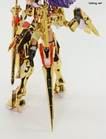 이 킷은 프레임암즈 걸 시리즈로 발매된 드루가 <골드 리터>입니다. 기존의 프레임암즈 드루가 I에 골드 코팅을 입히고, 약간의 병장이 추가된 구성인데요. 별매의 MSG 버추어 스타일 01 소드 세트가 재활용되었고, 양 어깨 파츠는 신규 조형으로 추가되었습니다. 우선 무려 10장의 런너에 골드 코팅이 올라가면서, 가격도 14400엔으로 상당히 고가에 나왔는데요. 코팅 품질 자체는 매우 좋지만, 원본 킷보다 2배 이상 비싸지긴 했습니다. 구성적으로는 드루가 I의 파츠가 모두 포함되어 있고, 여기에 드루가 II의 헤어 런너도 추가되었는데요. 실제 골드 리터로 구성할 때는 드루가 II 의 포니테일 헤어를 장착하게 됩니다. 골드 코팅 파츠가 워낙 많아서, 가조립 만으로도 상당히 번쩍이는 비주얼을 완성할 수 있는데요. 많은 고정핀 부위에 코팅막이 추가되면서, 조립이 뻑뻑해진 포인트가 상당히 많습니다. 특히 발이나 백팩 등의 주요 가동핀이 너무 뻑뻑해서 결합이 잘 안되거나, 가동중에 부러질 가능성이 높은데요. 조립 중에 위험해보이는 고정핀은 반드시(!!) 하나 하나 사포로 갈아서 코팅면을 제거하고 만들어야 조립 자체가 가능합니다. 다만 제 경우도 뻑뻑한 백팩 고정핀 하나를 가동 중에 부러뜨렸는데요. ㅠㅠ 방심하고 사포로 갈아주지 않고 끼웠다가, 회전하면서 부러져 버렸습니다. 그래서 양면 테잎을 붙여가며 겨우 겨우 리뷰를 마쳤네요 ㅠㅠ 혹시 여러분들이 이 킷을 조립한다면, 코팅막이 추가된 고정핀은 일단 살짝 사포로 살짝 갈아내고 조립하시기를 강추합니다. 그리고 기존 파츠도 모두 들어있다보니, 오리지널 드루가 I으로도 조립할 수 있는데요. 소체모드에 파츠를 재조합하여 골드 리터 (아마조네스 폼)으로도 구현할 수 있습니다. 이 때 연질 재질의 허리 벨트에 칼집을 거치할 수 있는데요. 벨트 재질이 부드럽지 않아서, 자연스럽게 걸치기가 쉽지 않긴 합니다. 이렇듯 소체모드와 드루가 I, 골드리터와 아마조네스 폼까지 총 4가지 형태로 다양하게 구현할 수 있는데요. 우수한 골드 코팅 덕분에 비주얼은 훌륭하지만, 고정핀 사포작업에 상당한 주의와 시간이 필요한 킷입니다. (그냥 조립하면 반드시 피눈물 납니다) 다만 유격이 줄어드는 코팅판 특성상, 관절강도가 매우 튼튼하다는 점은 장점이 되기도 한데요. 어쨌든 장점과 단점이 너무 극명한 킷으로서, 골드 코팅을 좋아하고 사포작업에 거부감이 없으며, 주머니 사정도 여유로운 분이라면 질러볼만한 킷인 듯 합니다.:-) |