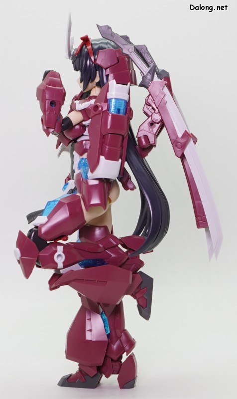 이 킷은 프레임암즈 걸 그란데 스케일로 발매된 마가츠키입니다. 전작들처럼, 기존의 프레임암즈 걸 마가츠키를 대형 스케일로 확대한 킷인데요. 전체적인 외관은 기존의 프레임암즈 걸과 거의 비슷한데, 커진 스케일만큼 어깨와 복부의 색분할이 추가되었습니다. 전체적으로는 기존 프레임암즈 걸 킷을 확대복사한 느낌의 부품 구성을 보여주고 있는데, 부품이 큼직해서 조립하는 맛이 있는데요. 기본 관절 구조는 그란데 스케일 전작들과 비슷하지만, 병장이 많이 추가되면서 다리 가동범위는 좁아졌습니다. 그 외에 큰칼 "텐카이"와 2개의 작은 칼 "사츠가"가 무장으로 제공되는 점도 기존 프레임암즈 걸과 동일하며, 악세사리 파츠 역시 비슷하게 제공되네요. 이 킷의 아쉬운 점은 관절강도인데, 마가츠키 특유의 화려한 병장 무게를 버티기엔 많이 부족합니다. ㅠㅠ 날씬했던 전작들은 크게 문제가 없는 수준이지만, 이 킷 만큼은 내구성이 불안하네요. 직립은 그럭저럭 가능한데, 다리를 번쩍 든다던지 하는 식의 역동적인 포즈는 전혀 고정이 되지 않습니다. 이렇게 대형 킷을 만들거면 관절 내구성부터 고려했어야 할텐데, 초기에 나온 고우라이나 스틸렛만 버틸 정도였나 싶네요. 이렇듯 화려한 병장 덕분에, 가만히 세워만 놔도 예쁘긴 한데요. 25cm나 되는 크기 답게 상당한 존재감을 내뿜고 있긴 합니다. 화려한 포징은 포기해야겠지만, 크기에서 오는 만족감을 중요시하는 분이라면 나름 추천해드릴만한 킷인 듯 하네요 :-) |