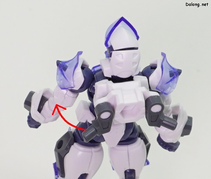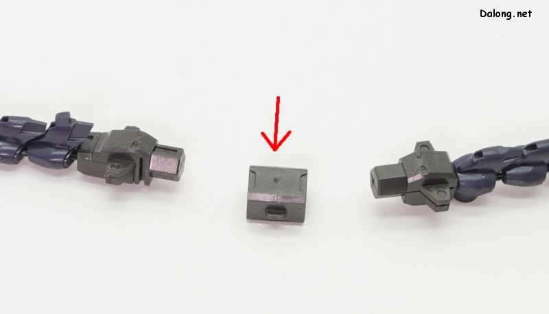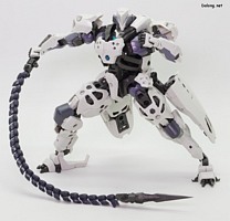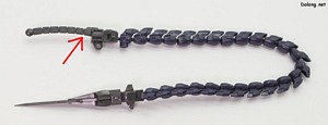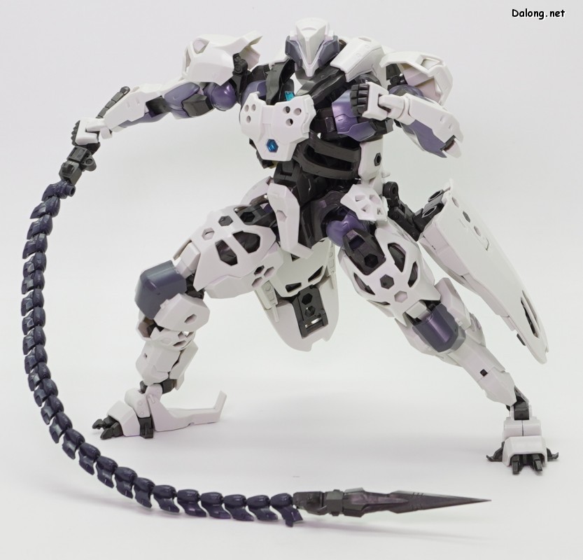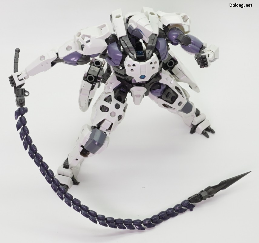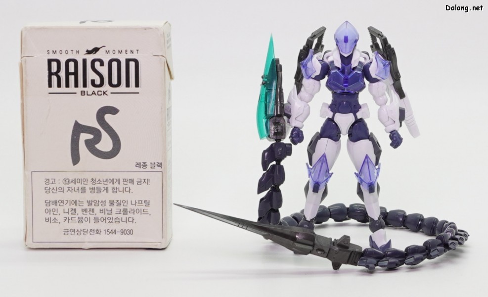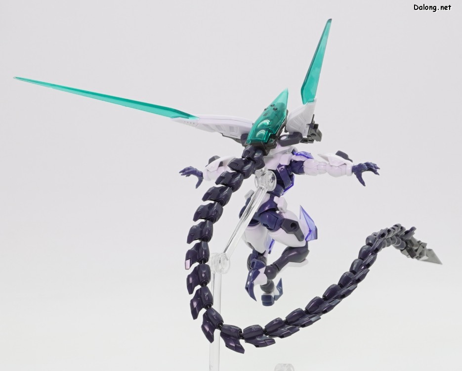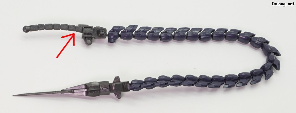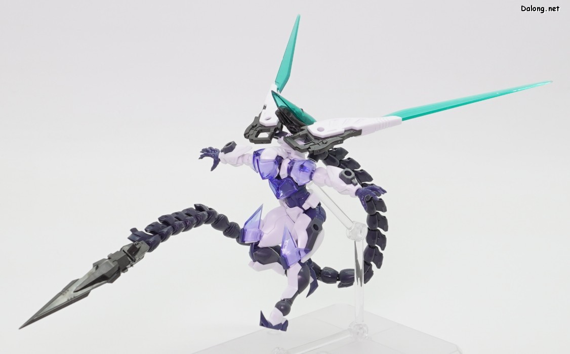 무장으로 2개의 라이플과 체인 블레이드가 제공되는데, 라이플에는 이펙트 파츠를 각각 적용할 수 있는데요. 체인 블레이드 내부에는 2가닥의 리드선이 심어저 있어서, 어떤 각도로 휘어도 잘 고정되고 있습니다. 다만 체인 블레이드가 무거워서, 이를 이용한 액션 포즈를 취할 때 무장용 스탠드가 추가로 더 필요하네요.