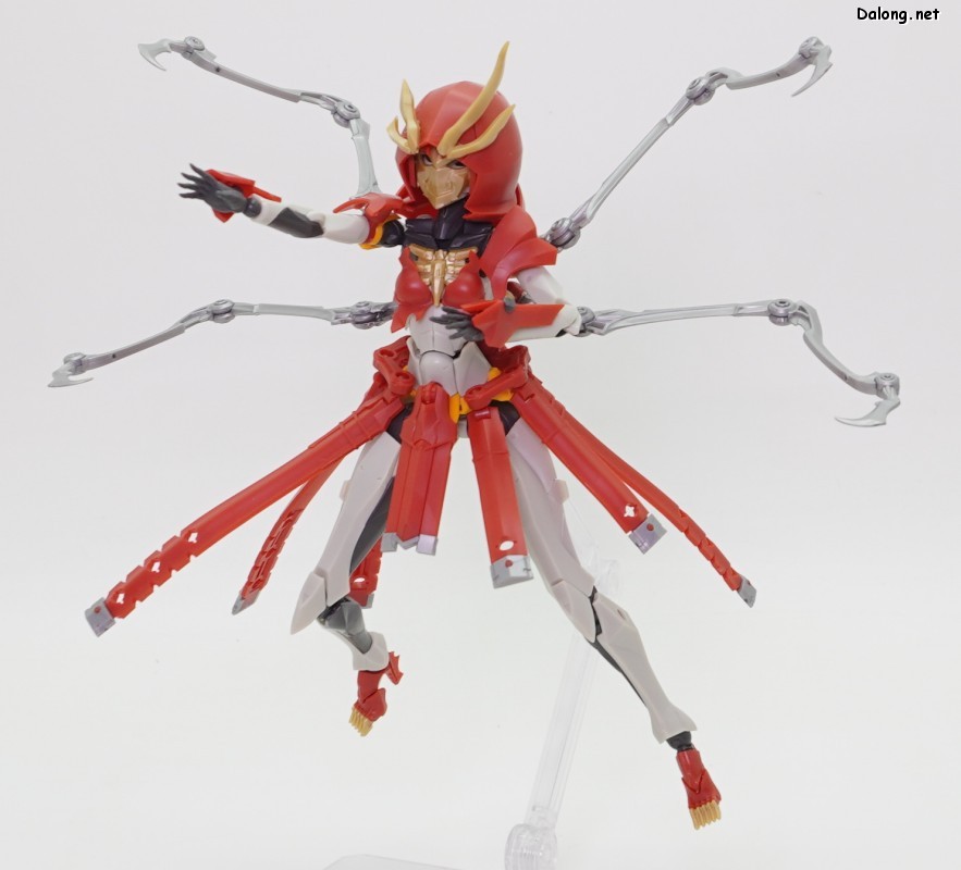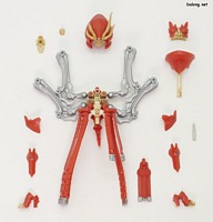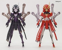 이 킷은 고토부키야 메갈로마리아 시리즈로 발매된 엑스아머 소서리스입니다. 엑스아머 시리즈는 메갈로마리아 프린시펄에 입히는 병장 세트인데요. 이번에는 붉은색과 오리지널 프린시펄 컬러가 조합된 메갈로마리아 네크로 페이스를 만들 수 있도록, 네크로 페이스의 병장 런너들만 모은 킷입니다. 고로 모든 특징은 기존의 네크로 페이스와 동일하며, 등에 달린 4개의 확장의지(인공팔다리)가 특징인데요. 확장의지의 고정성은 튼튼하지만, 몸체에 달린게 많아지면서 본체 자체의 내구성이 약간 불안한 점도 그대로입니다. 참고로 네크로 페이스에 들어있던 무장 카스 리퍼는 별도 무장으로 발매되면서 이 킷에 포함되어 있지 않았는데요. 대신에 보너스로 넣어주던 살색의 목/어깨/고관절은 함께 포함되어 있습니다. 어쨌든 신규 파츠는 없기에, 본 리뷰에서는 변경된 색감만 잘 관찰하셔도 될 듯 한데요. 프린시펄 기반의 다양한 활용을 좋아하거나, 붉은 컬러링의 여성 마법사 컨셉이 취향에 맞는 분이라면 재미있게 만들어볼만한 악세사리 킷인 듯 하네요 :-)