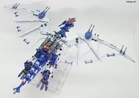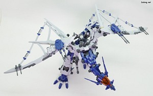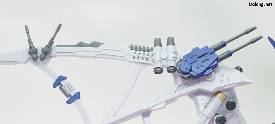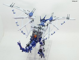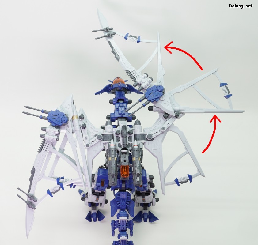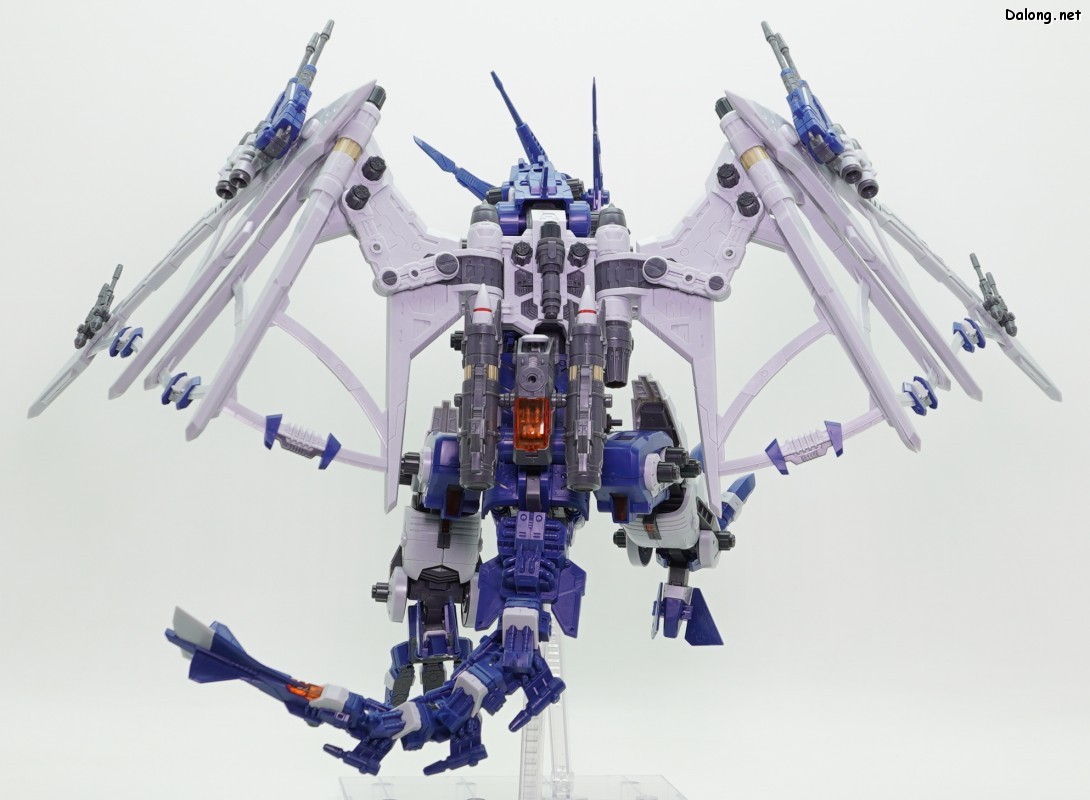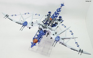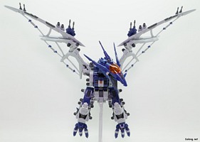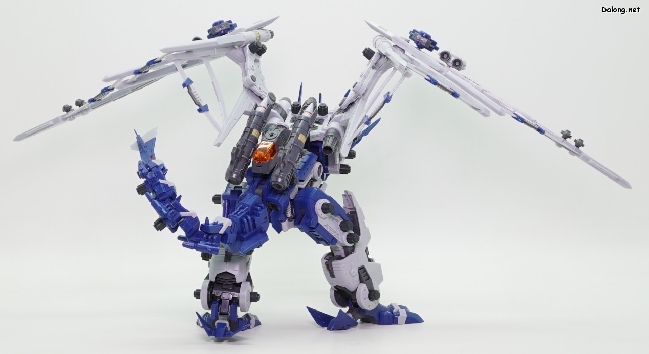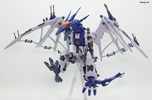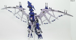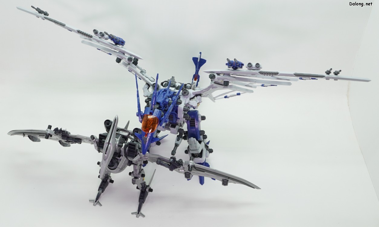 완성후의 볼륨감은 예상대로 굉장한데요. 날개를 최대로 펼치면 63cm, 몸체는 43cm 정도로 대형 프라모델로서의 떡대를 자랑합니다. 무엇보다 이렇게 크고 무거운 킷인데, 전체적인 관절강도가 아주 잘 조율되어 있습니다. 부드러우면서도 튼튼한 관절 덕분에 포즈를 취하기도 쉽고 자세 고정성도 우수한데요. 3단으로 펼치는 날개 마지막 단의 고정이 상대적으로 느슨하지만, 헐렁할 정도는 아니라서 조금만 신경쓰면 큰 문제는 없을 듯 합니다.