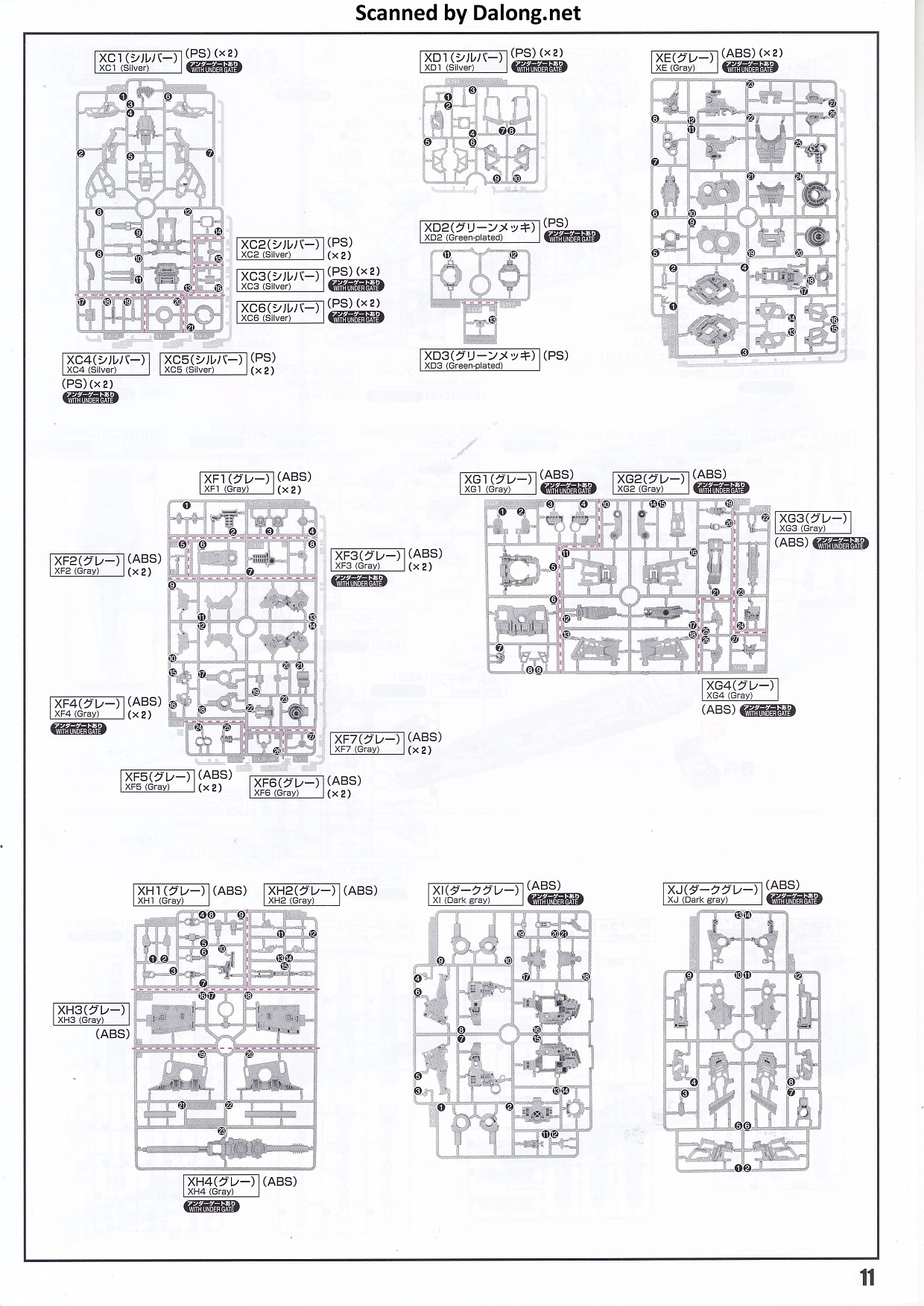 메탈릭 사출된 은색 런너들