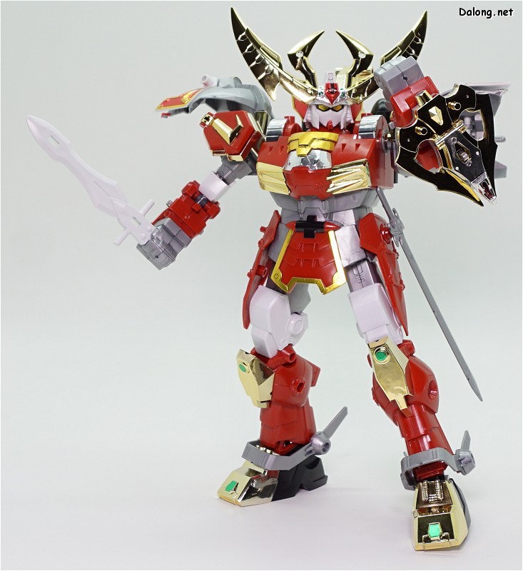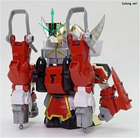 그외의 기본 특징 및 기믹은 기존과 거의 동일하며, 어깨의 태양강포 오픈 기믹, 손 발사 기믹은 물론 브이마루의 탑승, 강강형태로의 변형 과정도 똑같이 구현되어 있습니다. 그와 더불어 기존의 대강용 투구파츠도 그대로 들어있어서, 열화대강용 파츠를 제외하고 빨간색의 기동무사 대강으로 만들 수도 있네요.