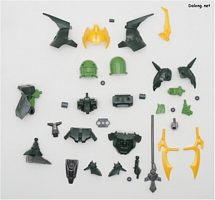 무장으로는 랑아-쌍중극이 제공되는데, 칼날을 분리하여 2개의 곡예검으로 사용할 수 있는데요. 양쪽 어깨장갑을 분리하여 손에 쥐어줄 수 있고, 오른쪽 어깨장갑에는 2개의 곡예검을 장착할 수 있습니다. 구조적으로는 SD 사마의 사자비의 런너를 재활용하여 몸통과 다리, 투구뒤쪽 파츠가 적용되었으며, 이에 따라 3개의 정크파츠가 남기도 하네요.