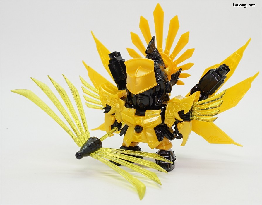 무신강림편의 다른 킷들은 2000년대 이후에 나온 킷을 베이스로 하고 있는데, 이 킷만큼은 1992년에 나온 천생대건담을 베이스로 하게 되었는데요. 그러다보니 어쩔 수 없이 상대적으로 품질감이 떨어지긴 합니다. 일단 사출색이 크게 변경되었는데, 그로스 인젝션으로 사출된 검은색과 노란색으로 구성되어 보색대비가 쩔게 나왔네요. 무장부에도 펄끼가 들어간 클리어 옐로우 파츠가 적용되는 등, 여러모로 많은 변화가 있었습니다.