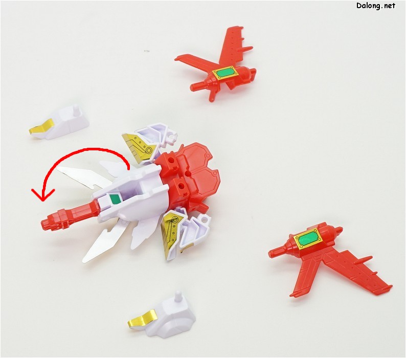머리의 무장을 전개하고 날개와 다리를 재배치하여 캇토비(뜀뛰기)제트로 구현한 모습