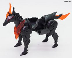 기본적으로 목과 꼬리, 다리가 가동되는 형태로서, 몸체 하단에는 스탠드용 고정핀이 가동식으로 달려있는데요. 허리를 연장하고 펼쳐서 편안하게 다른 SD 킷을 탑승시킬 수 있습니다. 이 때 안장 윗부분에 고정핀이 달려있어서, 삼국창걸전이나 월드 히어로즈 SD 킷의 고관절 프레임 하단 구멍에 꽂아줄 수 있네요. 덕분에 그 어떤 말보다 튼튼하게 기수를 고정할 수 있습니다.
