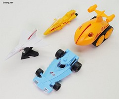 이 킷은 아카데미 독수리오형제 시리즈로 발매된 G-메카 세트입니다. G-5호기에 해당하는 불사조는 별도로 발매되었기에, 이 킷에는 G1~4 호기에 해당하는 4개의 기체가 들어있는데요. 각각 개별적인 박스와 매뉴얼로 분리된 제품이지만, 4개를 하나의 박스에 다시 모은 세트 형태로 발매되었습니다. 전반적으로 간결한 부품구성에 쉬운 조립성을 추구하고 있는데요. 재질감이 부드러워서 게이트를 다듬거나 조립하는 느낌이 편안합니다. 다만 전작들이 그렇듯이, 스냅타이트가 완벽하지 않아서 파츠간의 고정성은 여전히 살짝 불안한 감이 드네요. 물론 영 불안한 파츠는 본드로 붙이면 되긴 합니다. 그리고 전반적으로 단색 또는 2색 사출에 넘버링 스티커만 제공되고 있어서, 가조립 비주얼이 다소 썰렁한 감이 들긴 하네요. 어쨌든 각 기체별 주요 특징을 정리하면 아래와 같습니다. G-1호기 초음속 제트기 : 전용스탠드와 교체식으로 장착 가능한 랜딩기어와 갓챠맨 파이어 포함. 이렇듯 전체적으로 색상이 단조롭기도 하고, 사출색이나 손맛이 약간 식완스럽기도 한데요. 전작인 사령선이나 불사조에 비하면 조금 아쉬운 퀄리티이긴 합니다. 그래도 쉬운 조립으로 추억의 G-메카를 만들어본다는 것은 꽤 참신한 경험인데요. 독수리오형제에 로망이 있는 올드팬이라면 충분히 의미있는 킷일 듯 합니다 :-)