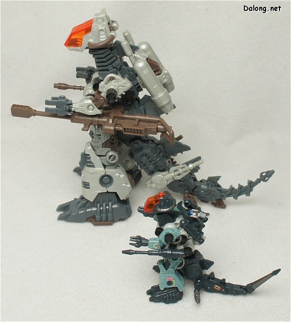 어쨌든 이런 작은 크기에도 불구하고, 목, 허리, 팔, 다리가 모두 가동되며 꼬리 또한 꽤 여러 마디의 관절로 가동이 가능하다는 점이 기특합니다. 또한 통상판과 강화형 고도스를 모두 구현할 수 있도록 머리와 무장세트가 2벌이 들어있어서, 크기에 비해 내용물이 나름 풍성한 킷이기도 하네요.