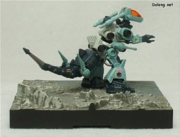 특히 관절의 가동폭 면에서 유리한 직립형 조이드 답게, 다양한 가동 관절들을 이용한 액션 포즈가 생각보다 괜찮습니다. 네발 달린 조이드 들은 취할 수 있는 포즈가 제한적인 경향이 있는데, MSS 고도스는 오히려 큼직한 고토부키야제 1/72 고도스보다 더 역동적인 자세가 나오는 느낌이네요.
