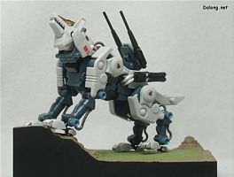 그런데 다른 조이드에 비해서는 비교적 날씬한 체구라서 그런지, MSS 조이드 중에서는 가장 가동성이 뛰어난 느낌입니다. 특히 허리의 상하 가동범위가 넓고, 다리의 접힘각도 큰편이라 쭈그린 자세, 쭉 편자세 등등이 나름 시원시원하게 재현되는 군요. 고토부키야의 코만도 울프에 비교해봐도, 뭔가 모르게 자연스러운 자세가 구현됩니다.