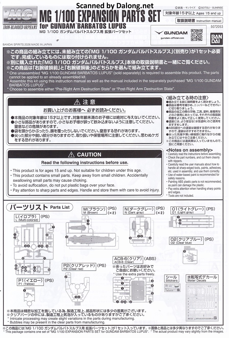 Expansion Parts Set for Gundam Barbatos Lupus