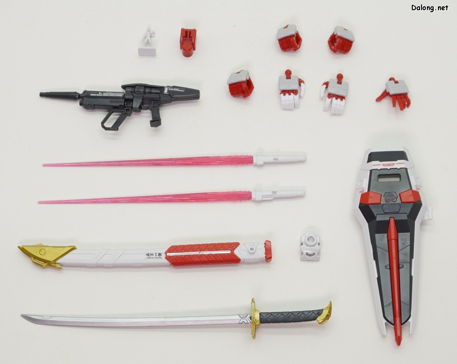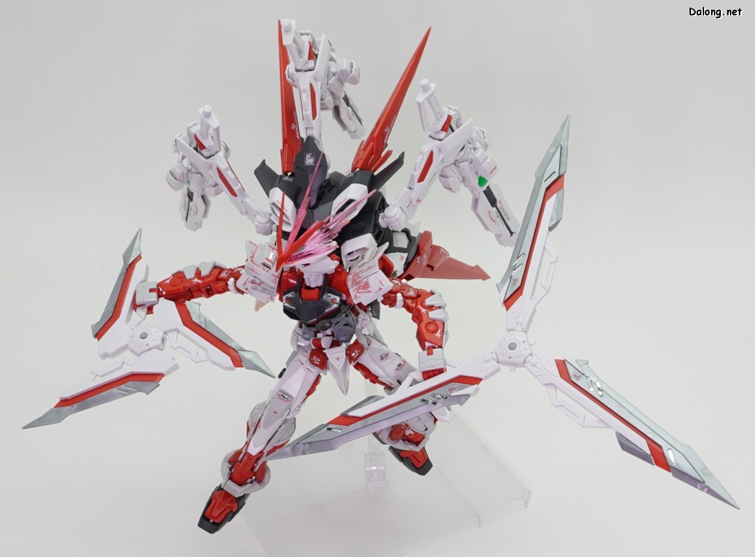 기본적으로는 기존 RG 아스트레이의 무장과 악세사리가 그대로 포함되어 있는데요. 본체는 신규조형이 적용된 머리로 교체되었고, 나머지 몸체와 팔다리는 사출색까지 기존과 동일합니다. 레드 드래곤 유닛은 플라이트 유닛과 3개의 칼레드불프로 구성되어 있으며, 조형부터 기믹까지 클럽G로 발매된 MG 건담 아스트레이 레드 드래곤과 거의 똑같이 나왔네요. 3단으로 구성된 플라이트 유닛의 상단 가동부와 하단 슬라이드 가동부도 똑같고, 부스터 옆 덕트를 돌려서 빔라이플과 실드를 거치하는 방식도 동일합니다.