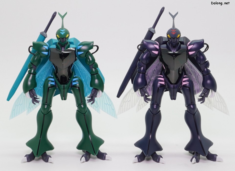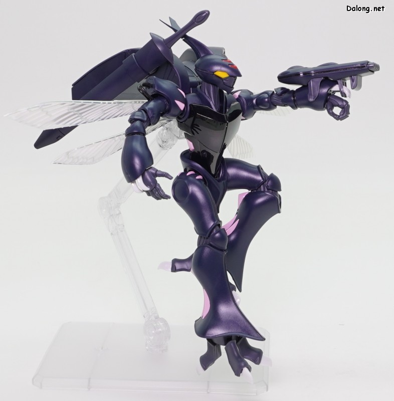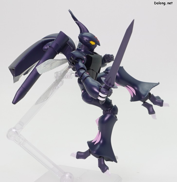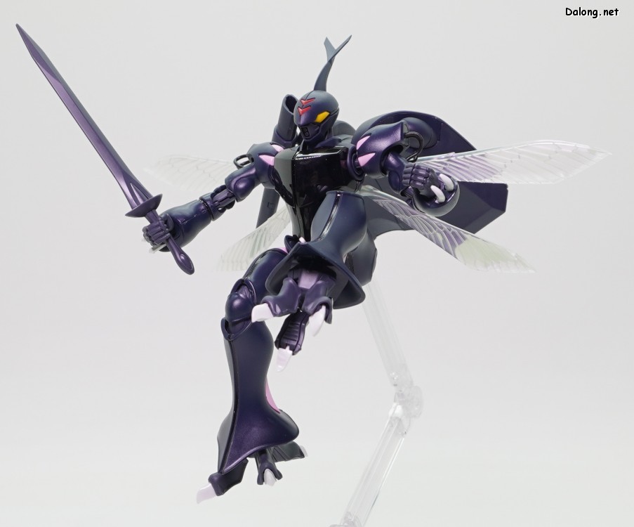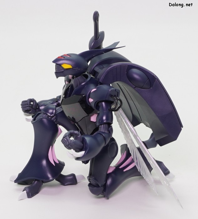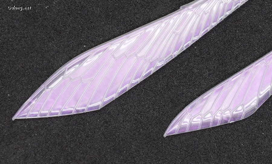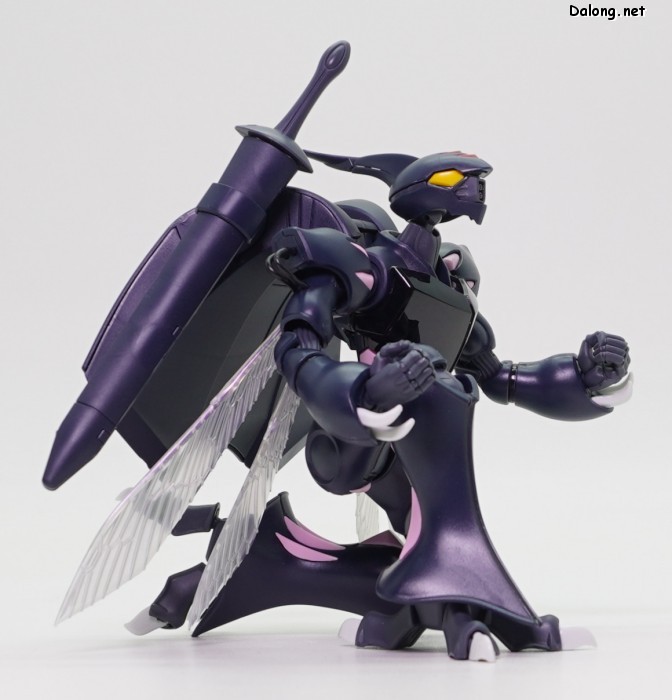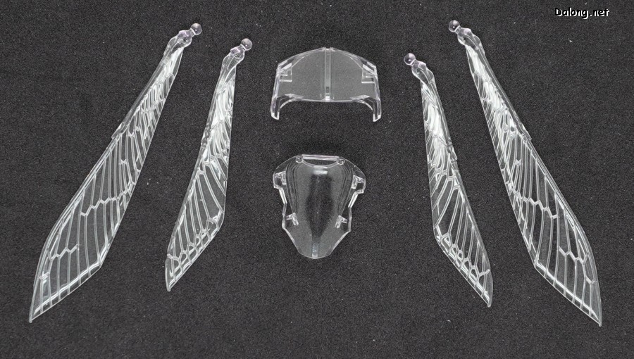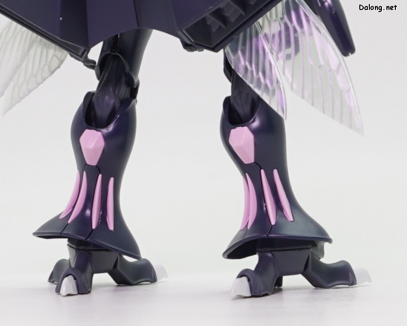 고로 가동특성 및 악세사리까지 기존과 모두 동일하며, 본 리뷰에서는 진한 남색으로 변경된 색감만 잘 관찰하셔도 될 듯 한데요. 날개에는 레인보우 코팅이 적용되어, 반사광에 따라 영롱한 광채를 내뿜고 있습니다. 또한 이 킷만의 새로운 보너스로 클리어 사출의 가슴장갑과 날개가 제공되어, 원하는 클리어 도료로 도색할 수 있는데요. 구조적으로는 폴리캡리스 관절이 다소 뻑뻑하지만, 여전히 전반적으로 깔끔한 품질의 킷으로 나왔습니다.