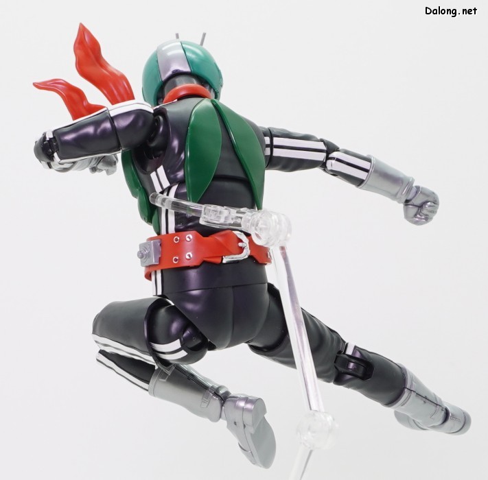 다만 초창기 가면라이더라 그런지 악세사리는 적은 편인데, 3종의 손과 2가지 머플러만 들어있네요. 대신 액션피규어로서 본체의 퀄리티가 워낙 좋아서, 별다른 악세사리 없이도 충분히 재미를 주고 있습니다. 그리고 프로포션 때문인지 스탠드 구멍을 없애고 허리를 잡아주는 소형 스탠드가 부속되어 있는데요. 아무래도 고정핀형 스탠드보다 고정성이 좋지 않아서, 공중 포즈로 전시해두기엔 다소 불안한 면이 있습니다.