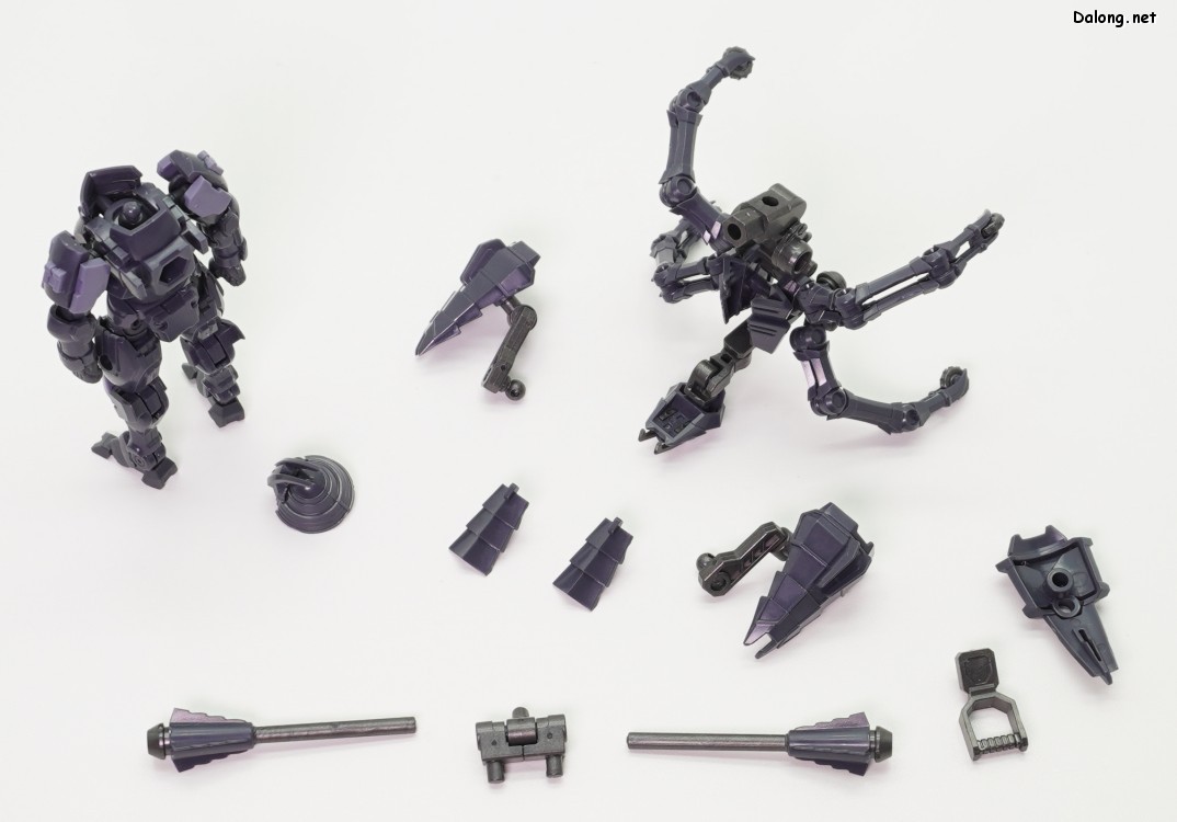 머리를 제외한 본체 자체는 원본 킷과 같은 구조라서, 여전히 우수한 가동성과 관절강도를 보여주고 있는데요. 등에는 거미를 연상시키는 백팩과 여러가지 병장들이 추가되었습니다. 무장으로는 전곤과 실드가 새롭게 추가되었으며, 병장을 분리하여 재조합하면 거미형 얼터너티브를 구현할 수 있는데요. 이 경우 본체의 머리까지 거미형 얼터너티브에 장착되기 때문에, 본체는 머리없는 유령(...)이 되긴 합니다.