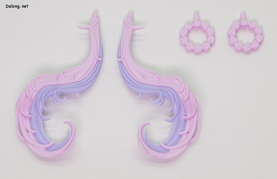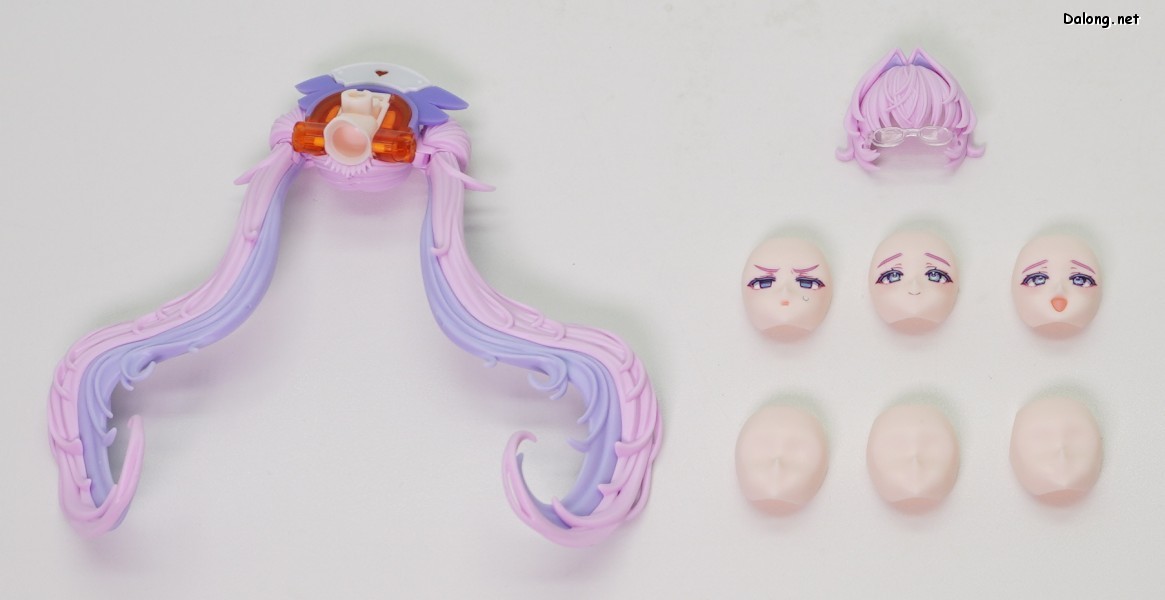 개인적으로 이 킷의 포인트는 레이더의 경우처럼 화려한 머리카락 표현같은데요. 자주색과 분홍색의 투톤에, 길고 현란한 디테일을 자랑합니다. 사출색 또한 파스텔 풍이라 꽤 고급지고, 넓은 범위로 가동되면서 고정성도 좋네요. 한마디로 스타일과 기능성 모두를 잡은 개성있는 헤어인 듯 합니다.